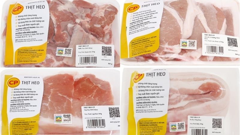 Bảng giá thịt heo các loại của thương hiệu Vissan, CP, G Kitchen, San Hà